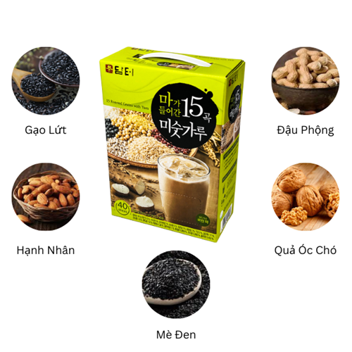 Bột ngũ cốc 15 loại hạt có nguồn gốc từ 100% nguyên liệu tự nhiên, qua công nghệ sấy khô hiện đại, giữ được hàm lượng dinh dưỡng và hương vị thơm ngon của các loại hạt.