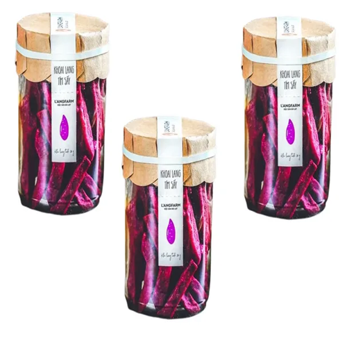Khoai lang tím sấy giòn Langfarm được chế biến từ nguyên liệu khoai lang tuyển lựa, không phẩm màu, không chất bảo quản, không hương liệu, hàng loại A, nguồn gốc xuất xứ rõ ràng.